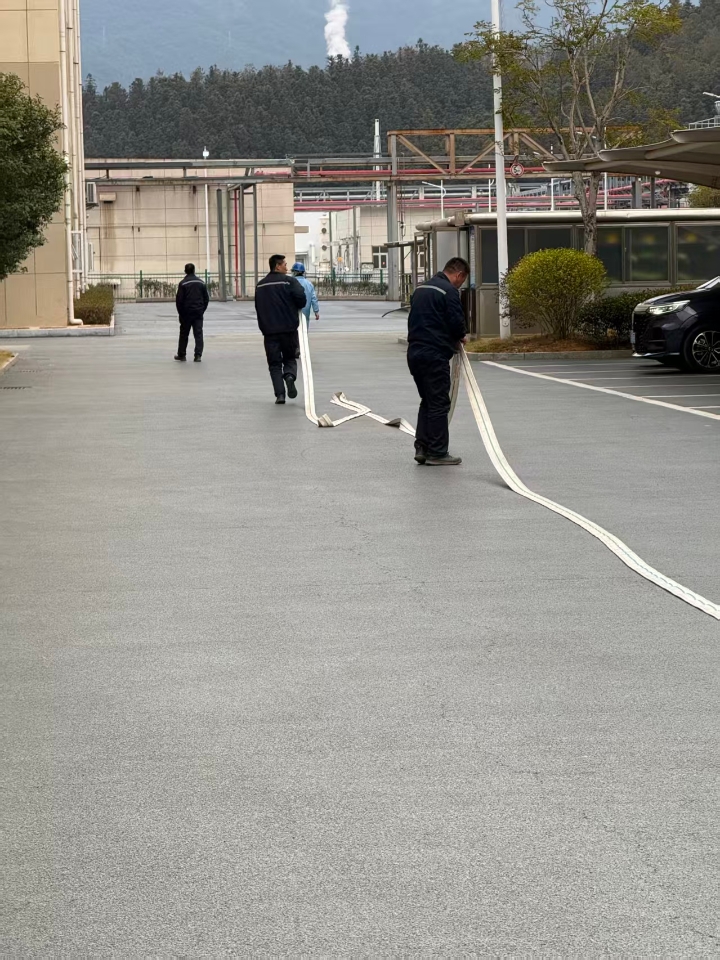 两名队员协同配合,迅速完成水带展开与连接,动作流畅、配合默契。应急处置中,“抢时间”就是“抢安全”,平日苦练只为关键时刻精准响应。