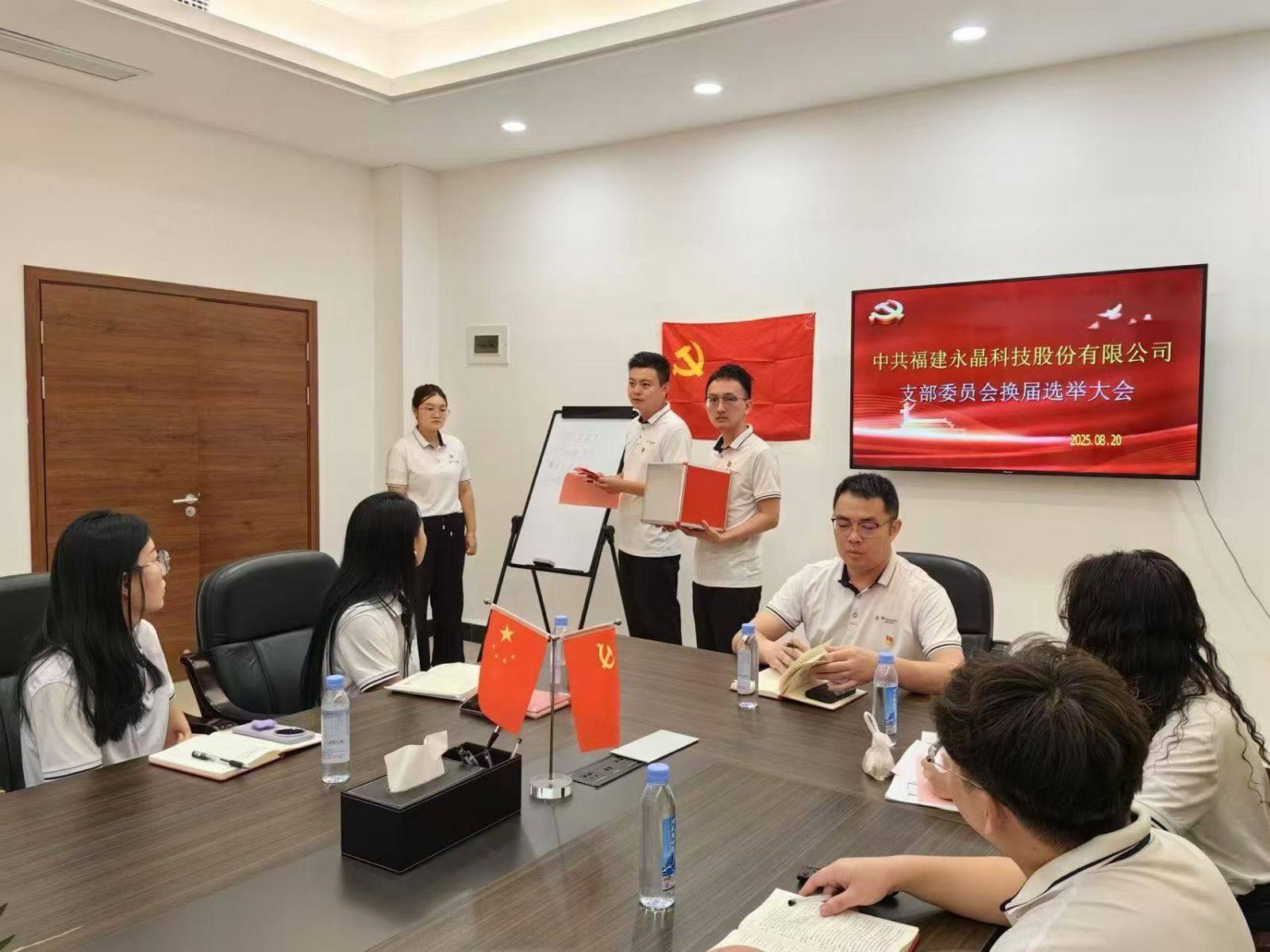 2025年8月28日,在上级党委精心指导和全体党员的共同参与下,中共福建永晶科技股份有限公司支部委员会党员大会顺利召开,并圆满完成换届选举工作。此次换届标志着公司党内政治生活迈向新的规范化阶段,也为以高质量党建引领企业高质量发展注入强劲动能。